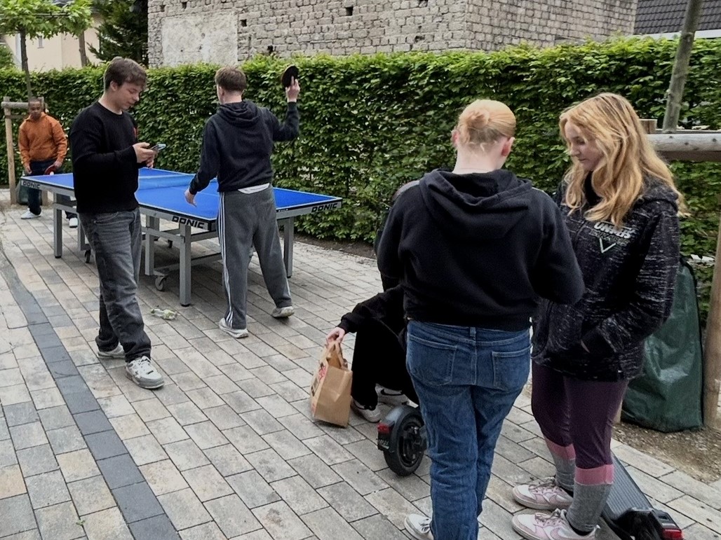Mit den ersten warmen Tagen im Frühjahr füllte sich auch der Außenbereich des Jugendtreffs schnell wieder mit Leben. An der Tischtennisplatte lieferten sich die Besucherinnen und Besucher kleine, aber ehrgeizige Matches – begleitet von viel Gelächter und guter Stimmung. Federball, Straßenracer und Cityroller waren fast täglich im Einsatz und machten den Hof zu einem lebendigen Treffpunkt, an dem Bewegung, Spaß und das gemeinsame Ausprobieren im Mittelpunkt standen.